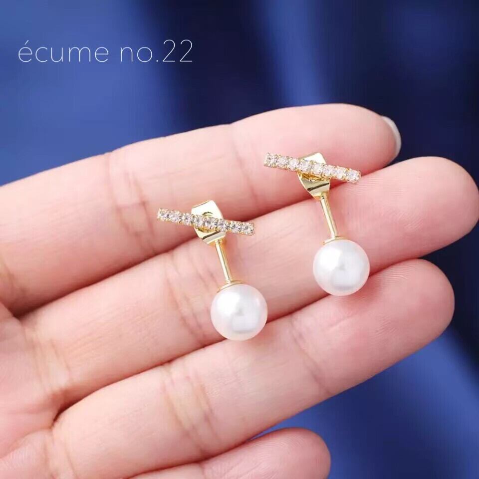 ストーンが8つ並んだチャームと、ぶら下がるようなパールが素敵です。華奢ながらも品のあるピアスなので、どんな場面にも華を添えてくれます。