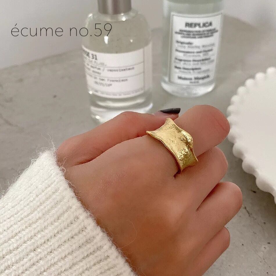 【no.59】テクスチャーワイドリング ゴールド