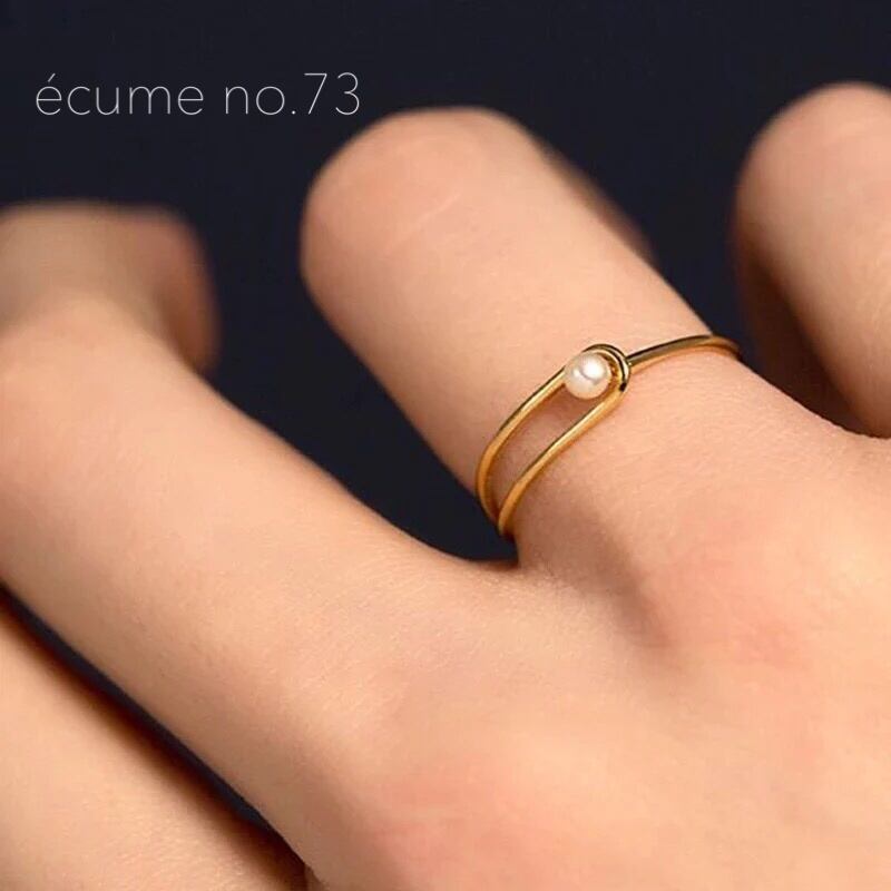 まるでパールでフックを留めているかのような、繊細で華奢な女性らしいリングです。