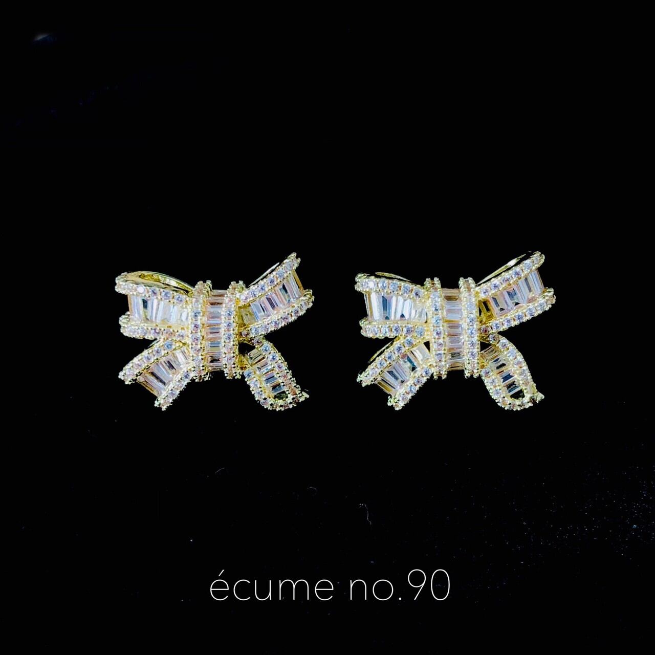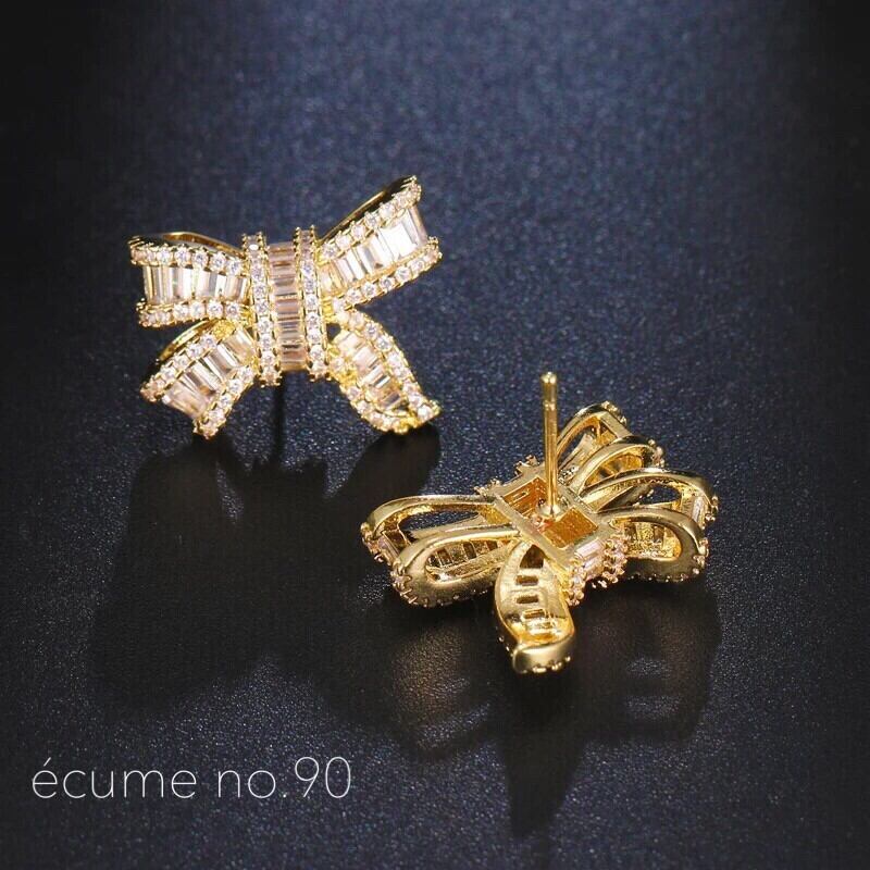 クリスタルとゴールドカラーのゴージャスで可愛いリボンピアスです♡