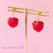 苺ガラスビーズの一粒ピアスになります。