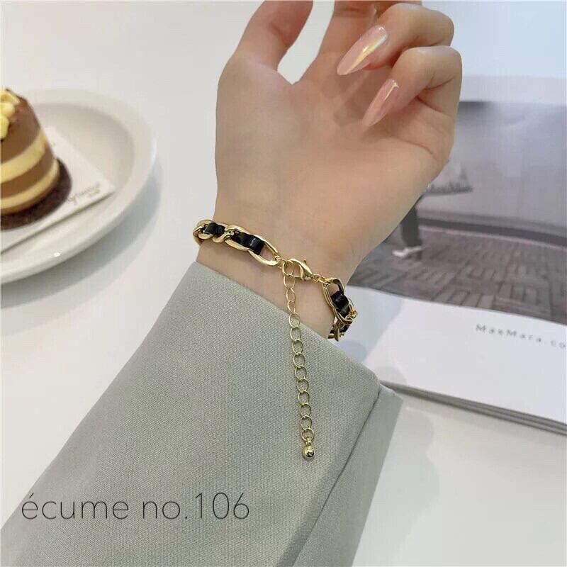 ゴールドチェーンとレザーを掛け合わせたブレスレット。