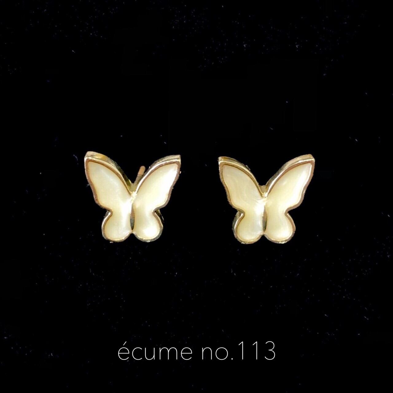 オフホワイトカラーのバタフライピアスです。