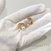 まるでふたつピアスを着けているような、パールとフープがダブルになったピアスです。華奢ながらも存在感のある素敵なお品です。