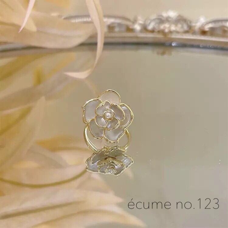 カメリアモチーフで真ん中にパールのついた上品で美しいリングです。