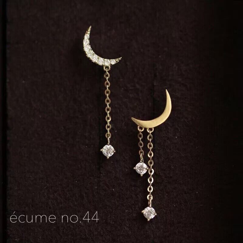 左右非対称のお月様のピアスです。揺れるたび、キラキラした月夜をイメージさせます。高級感のある素敵なお品です。