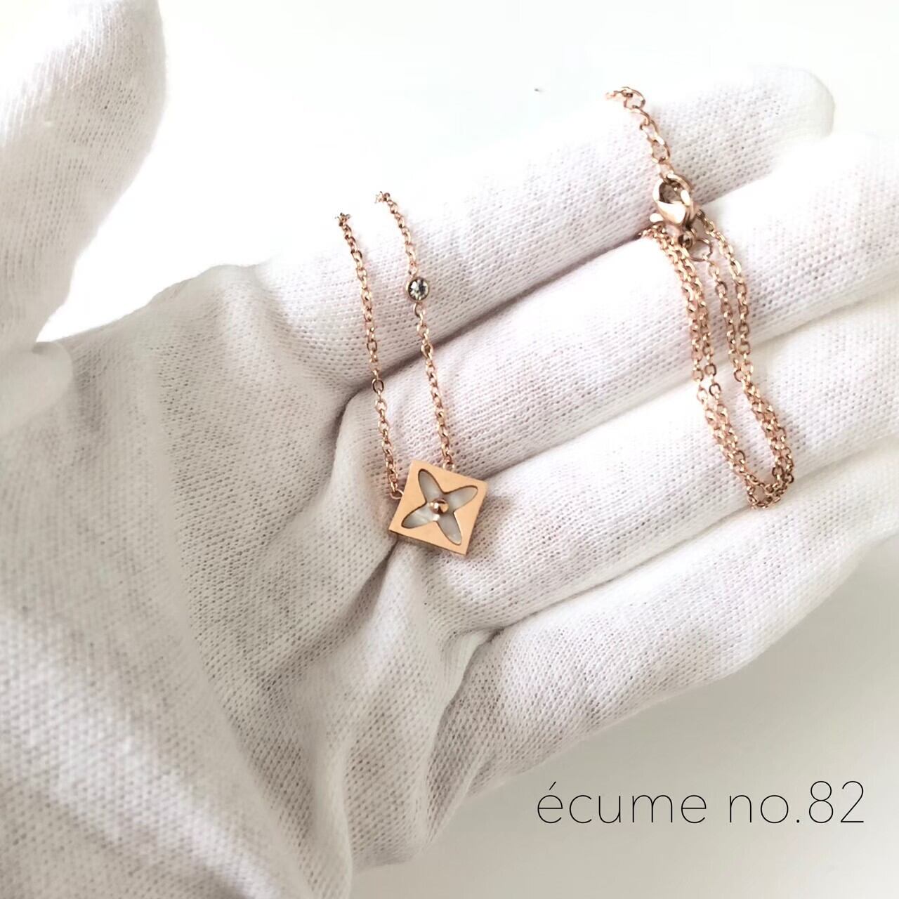 肌馴染みのいいピンクゴールドのネックレスです。ホワイトシェルのお花がアクセントの可憐なデザインです。