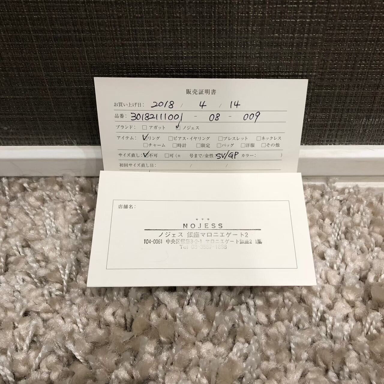 ◇付属品:販売証明書