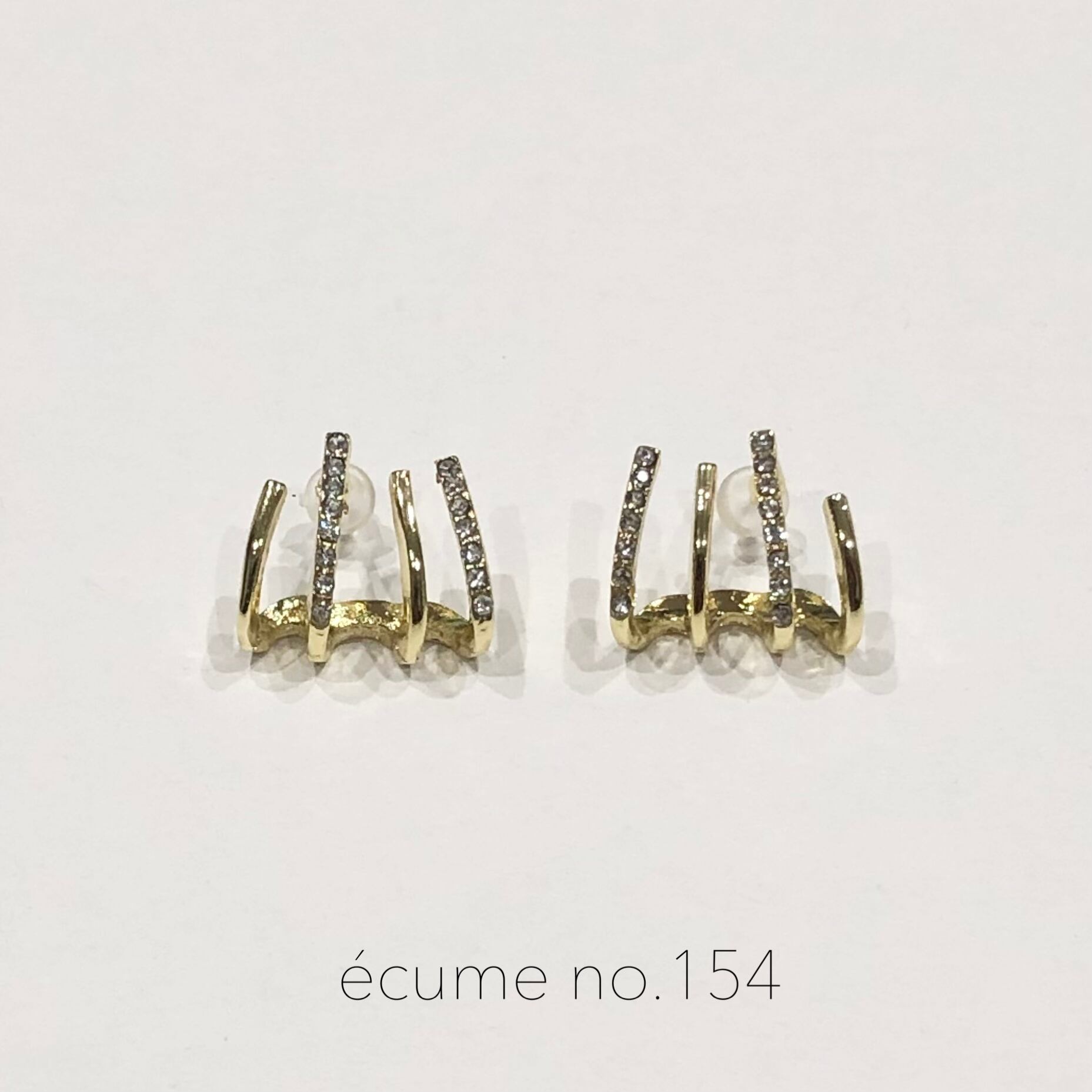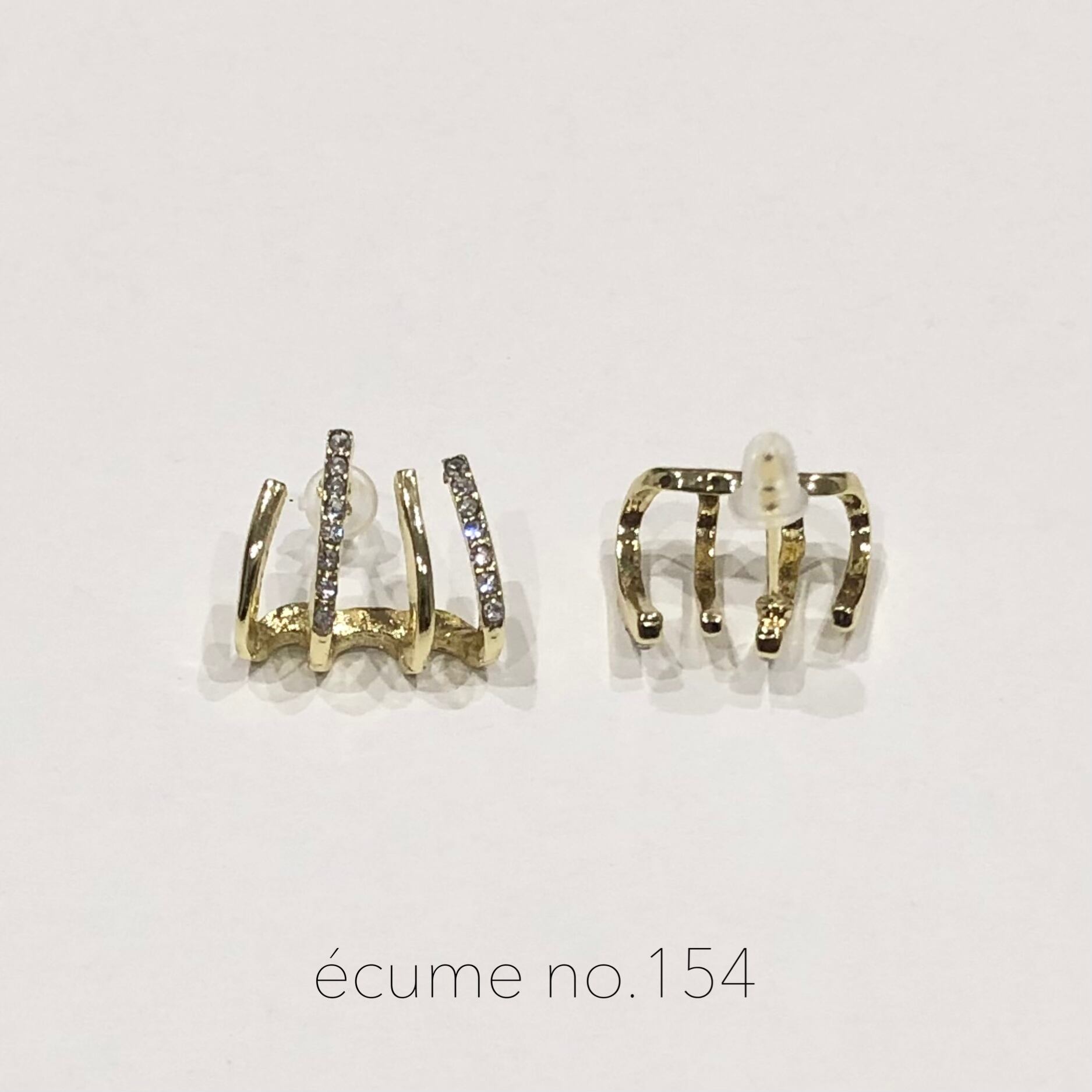 4つのリングが掛かっているように着用いただけるピアスです。スタッドタイプのピアスとなります。ゴールドのラインとストーンのラインが交互になっており、きらきらと輝くピアスです。